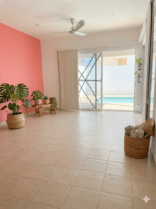 Área Social: Jardín privado con alberca, ideal para el clima de la costa.